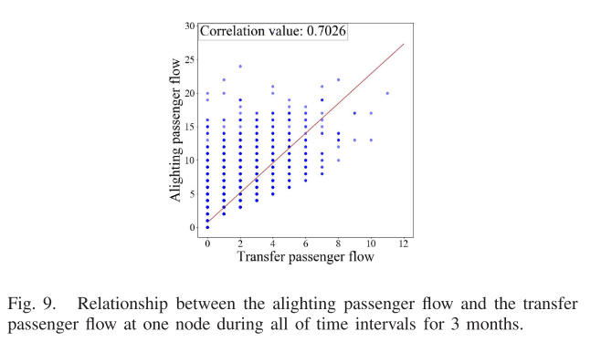 第三,换乘客流与B/A客流存在相关性,前者本质上是后者的一部分。