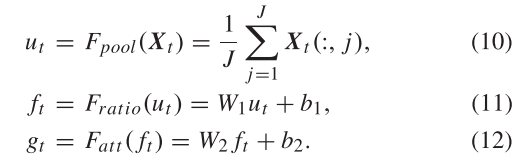 公式10将输入数据按照站点维度进行一个平均池化操作,在通过两个非线性转换得到注意力系数 g t ∈ R I × J g_t \in \mathbb{R}^{I \times J} gt∈RI×J。