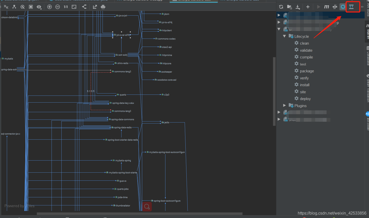 1,如下图:点击右上角的show Dependencies, 就会出现左边的依赖树图