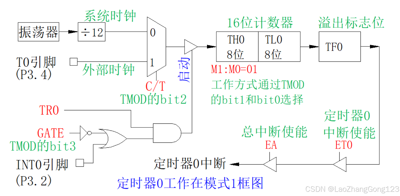 1、定时器0工作在模式1框图: