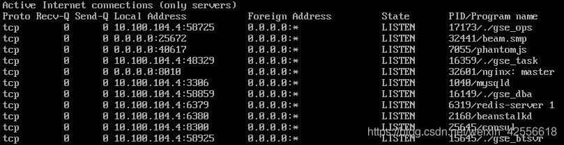 从图中可以看到,TCP 58725端口正在IP 10.100.104.4上侦听(LISTEN)中,有PID为17173的gse_ops进程提供服务