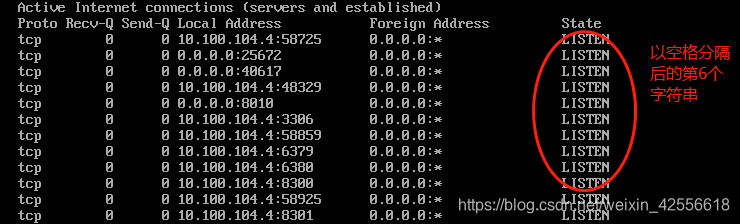 awk '{print $6}':以空格为分隔符,将每行的第6个字符串显示出来;如下图所示: