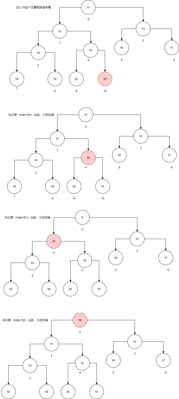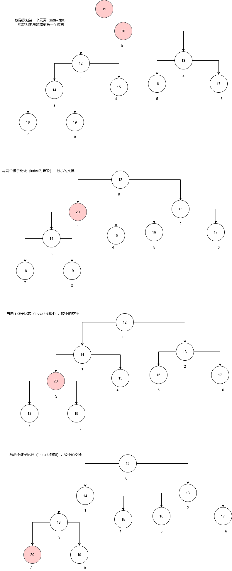 | 数据结构 | 数组 | 单向链表 | 数组(二叉堆) | 单向链表 |