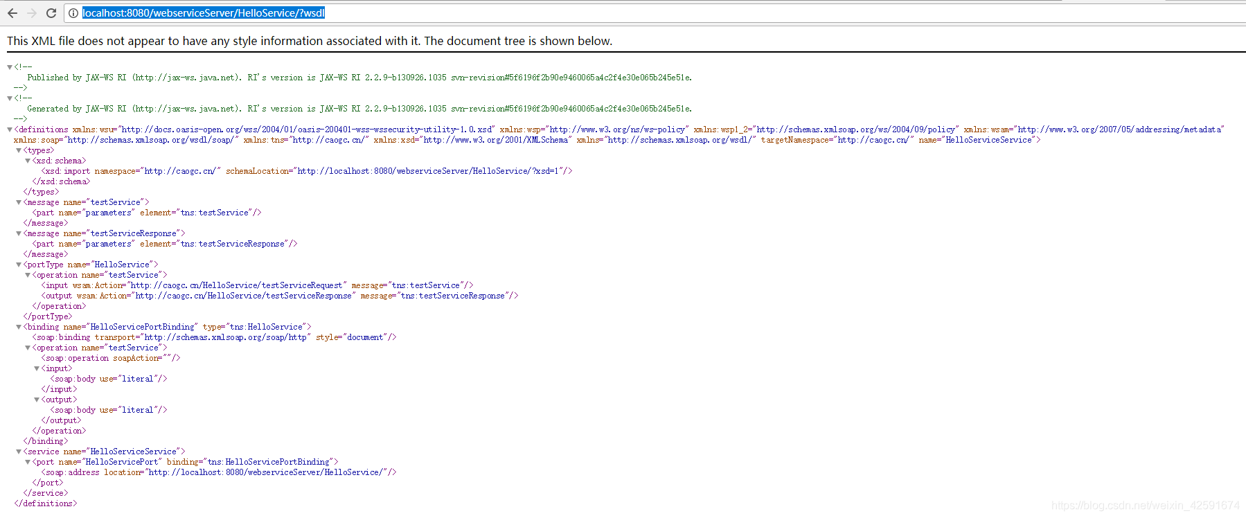 3.访问http://localhost:8080/webserviceServer/HelloService/?wsdl