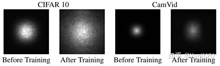有效感受野指的是并不是感受野内所有像素对输出向量的贡献相同,在很多情况下感受野区域内的影响分别是高斯,有效感受野仅占理论感受野的一部分,其高斯分布从中心到边缘快速衰减。