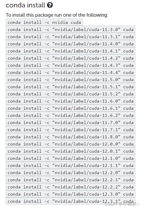 第二步:安装你torch版本对应的cuda版本,比如我虚拟环境安装的torch版本为: