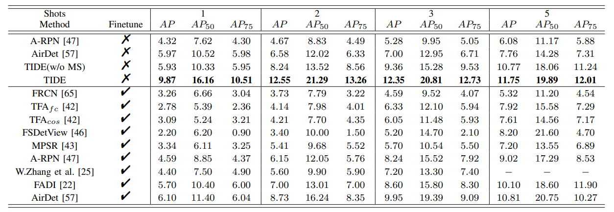 方法:论文提出了一种新颖的测试时间少样本目标检测(TIDE)方法,TIDE核心是在配置过程中不需要对模型进行微调,而是引入了一个不对称的架构,用于学习支持实例引导的动态类别分类器。此外,还提供了交叉注意力模块和多尺度调整器来增强模型性能。