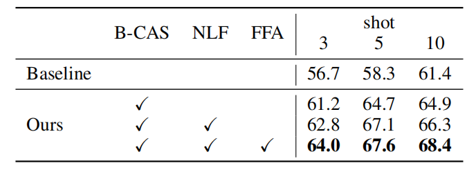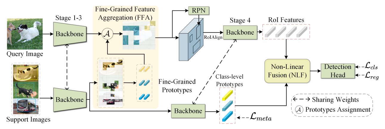 方法:论文提出了一种新的小样本目标检测框架,通过细粒度的特征聚合(Fine-Grained Feature Aggregation, FFA)模块来改善特征的融合和表示,以实现更有效的知识转移和新类别的快速学习。