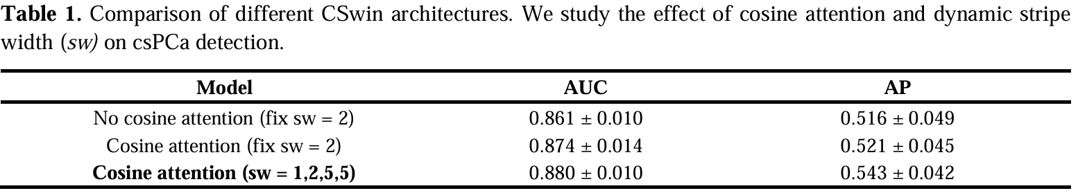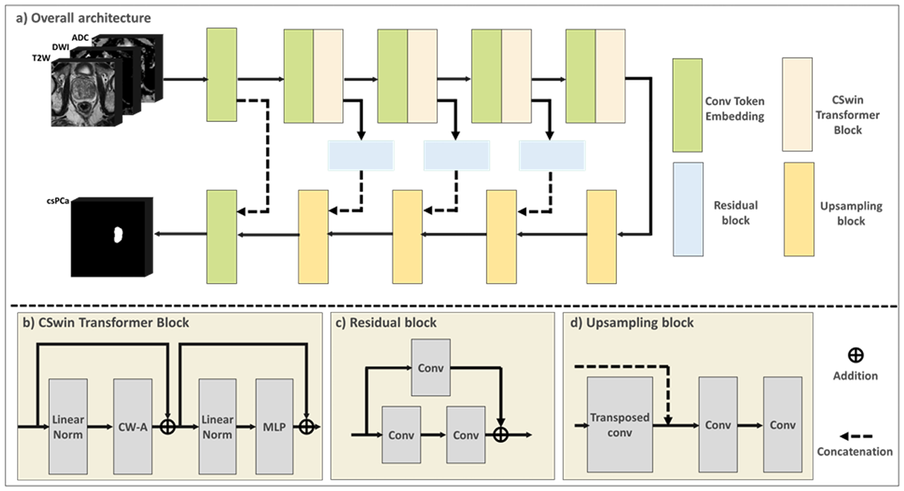 方法:论文提出了一种基于Transformer和UNet的新型模型CSwin UNet,用于检测前列腺癌。它结合了CSwin Transformer编码器和CNN解码器,通过自监督学习和多任务损失函数进行预训练,显著提升了检测性能和模型泛化能力,优于现有的CNN和Transformer方法。