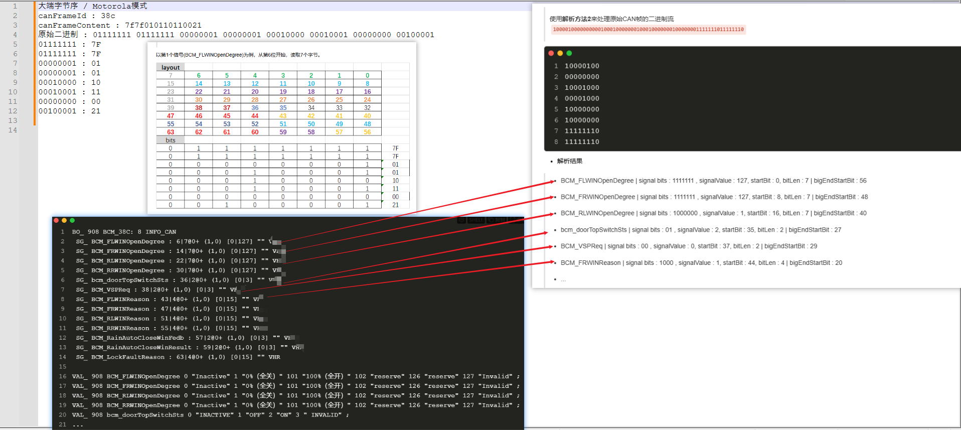 * 从16进制序列中按照指定的大小端(字节序),提取指定长度的、指定偏移位的二进制串
