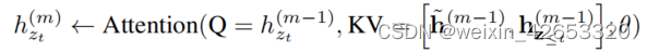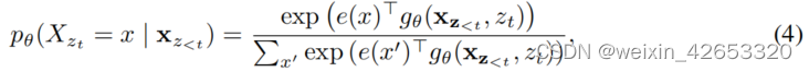 (2)查询表示gθ(xz<t,zt),或缩写为gzt,它只能访问上下文信息xz<t和位置zt,但不能访问内容xzt,如上所述。