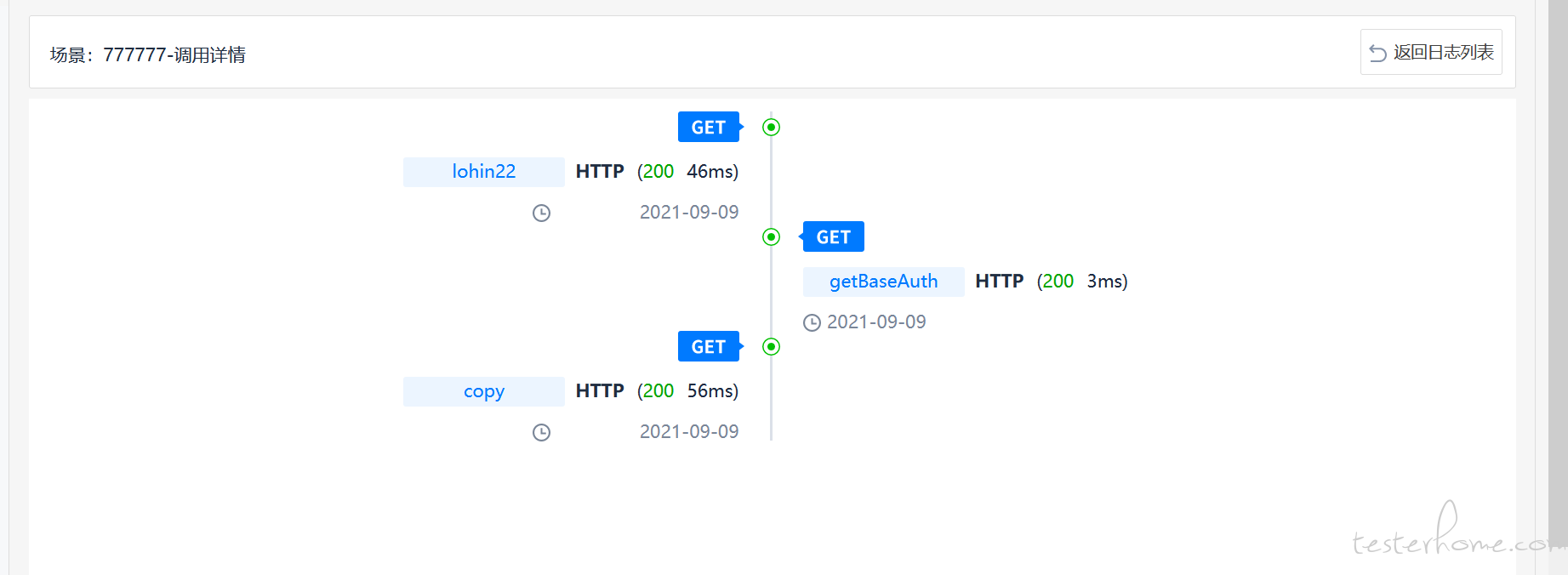 直接上图,场景执行完,要是有问题,通过执行的执行链跟踪,也就是通常的调用链跟踪,便于排错,如出错,还可从调用链上从出错的节点一下,手动触发接着执行,且是在同一数据上下文,在调用连上点接口名,可查看,该接口在执行时具体的出入参等信息