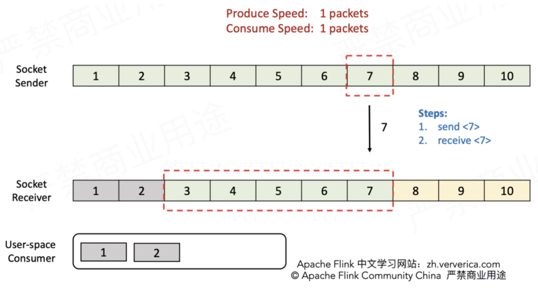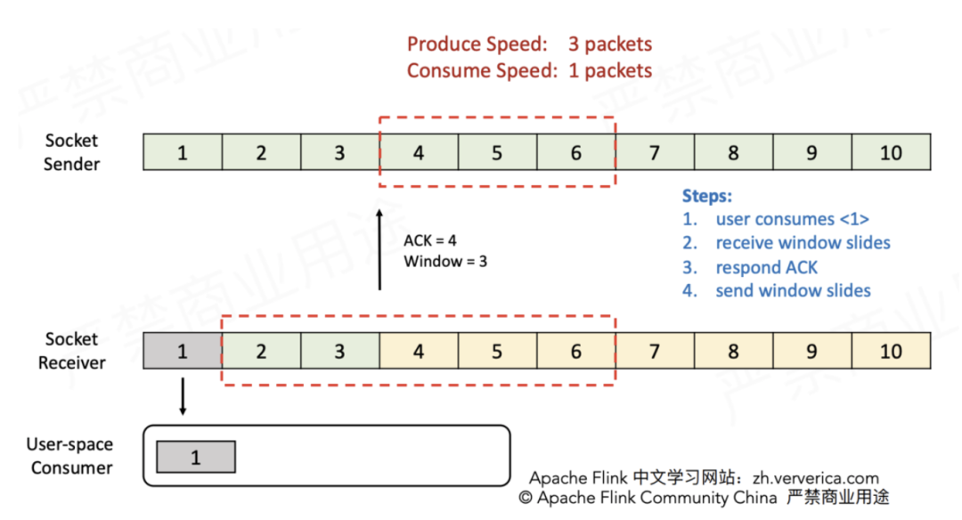 在1.5版本之前,Flink并没有特别地去实现自己的流控机制,而是在传输层直接依靠TCP协议自身具备的滑动窗口机制(大学计算机网络课程必讲)。下面通过实例来复习TCP滑动窗口是如何实现流控的。