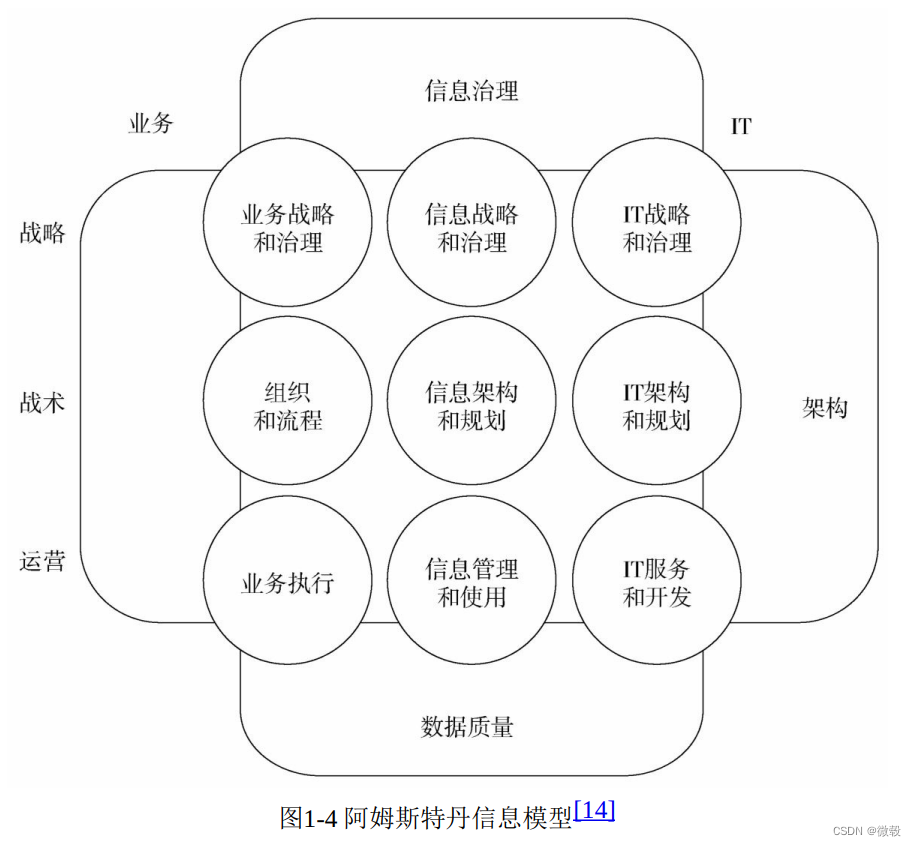 - 4个基本领域:业务战略、IT战略、组织和流程以及信息系统。
