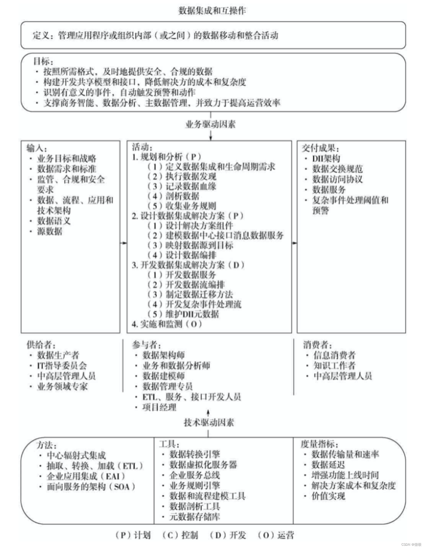 数据集成和互操作(DII)描述了数据在不同数据存储、应用程序和组织这三者内部和之间进行移动和整合的相关过程。数据集成是将数据整合成物理的或虚拟的一致格式。数据互操作是多个系统之间进行通信的能力。数据集成和互操作的解决方案提供了大多数组织所依赖的基本数据管理职能: