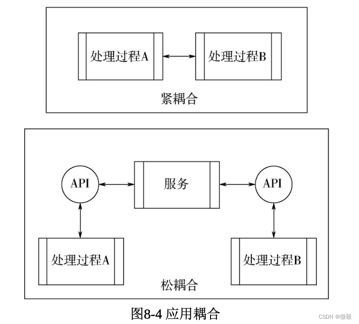 耦合描述了两个系统交织的程度。两个紧密耦合的系统通常有一个同步接口,其中一个系统等待另一个系统的响应。在某些情况下,松耦合是一种优选的接口设计,其中在系统之间传送数据不需要等待响应,而且一个系统不可用时,不会导致另一个系统无法使用。