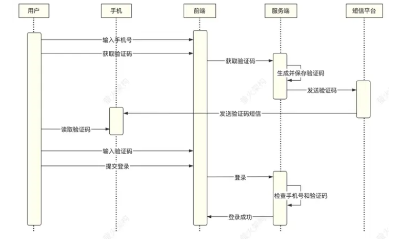 手机验证码登录是最常见的登录方式,不用记忆密码,注册登录一气呵成,但需要第三方短信运营商接口接入,其实现原理如下: