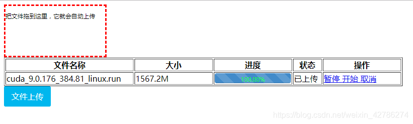 3.在上传的过程中随意暂停,继续,取消