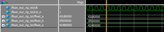 其中float_a和float_b是两个乘数,float_o是输出结果42480000对应的十进制数是50;