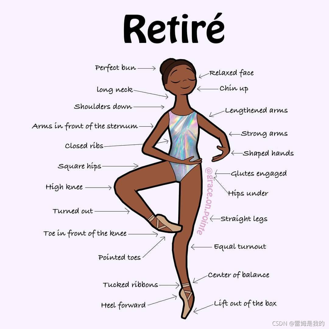 芭蕾的一个重要特点,就是必须保持稳定性。比如说这个叫做退休(retire)的动作。芭蕾的基本是能站无限长!