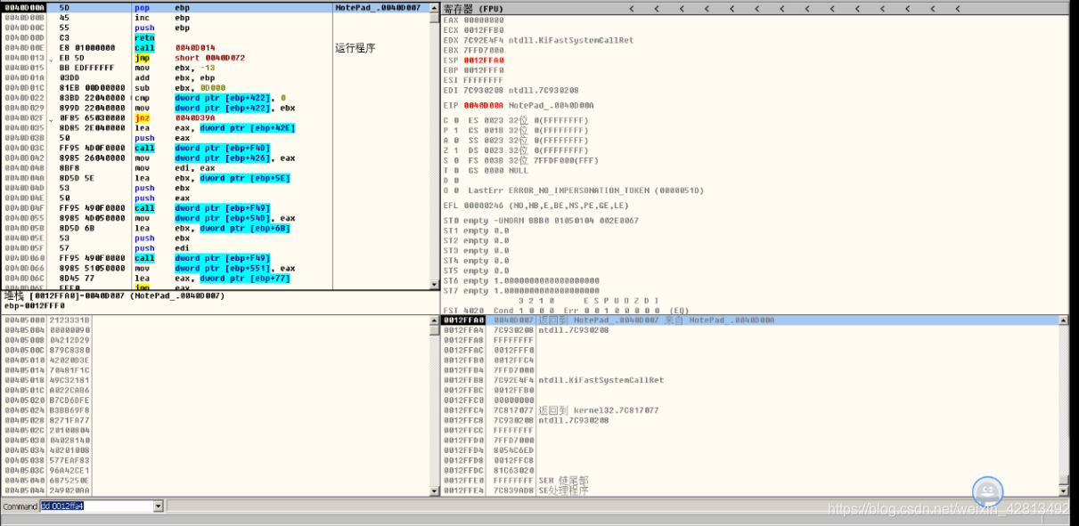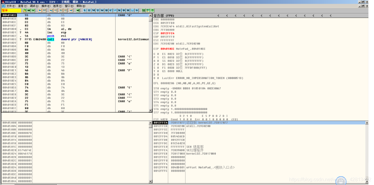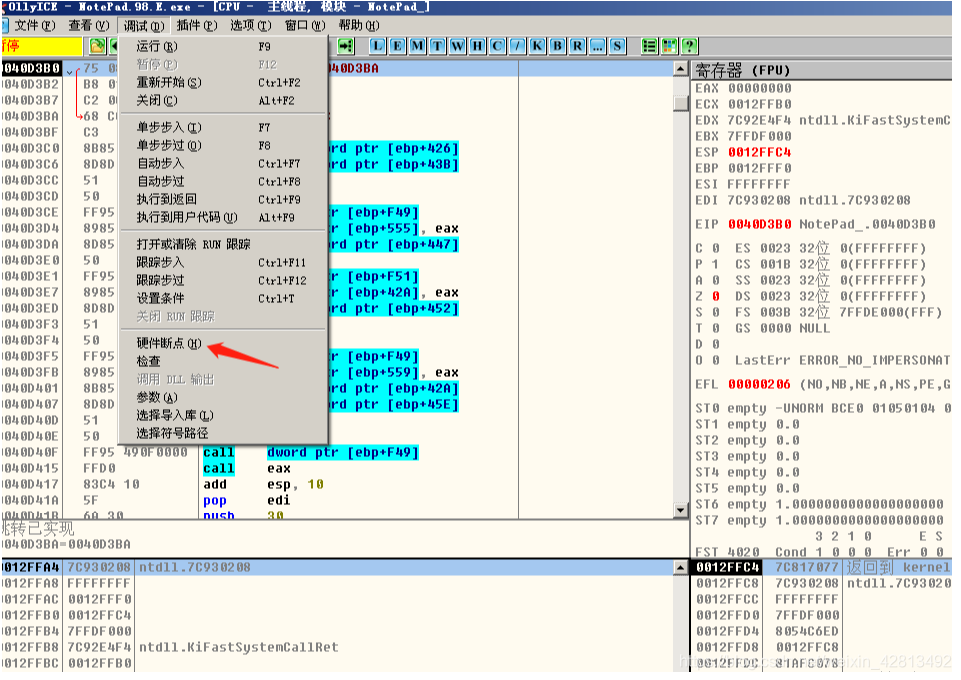 6:按F2下断点!然后按SHIFT+F9来到断点处!