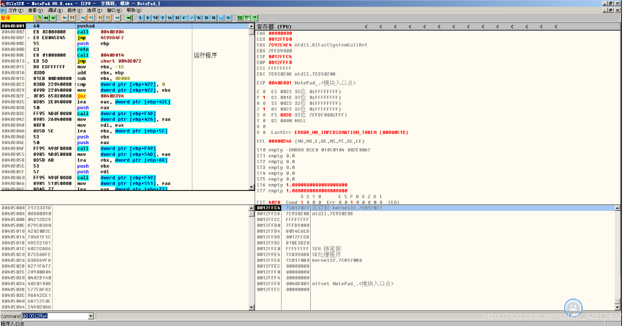 1:先试运行,跟踪一下程序,看有没有SEH暗桩之类