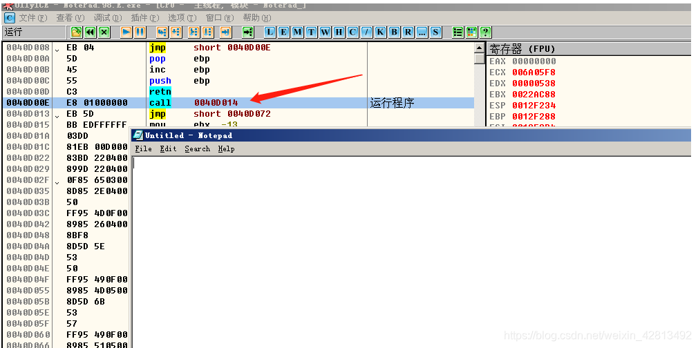 进入程序后使用F8单步,当经过call时,若打开程序,则进行备注