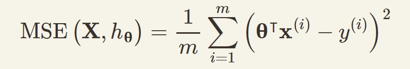 其实这个公式的含义就是:获取每个实例特征向量和特征权重向量相乘的结果(也就是模型预测的结果),减去对应的实际结果,再求平方。把所有的平方求和,就是要求的均方误差