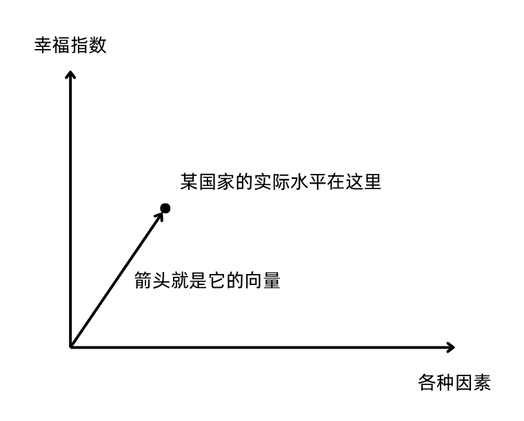 从几何意义上理解,我们要做的其实是找到多少个“人口密度”的向量+多少个“可自由支配时间”的向量,最终可以得到这个国家实际幸福指数水平的向量!