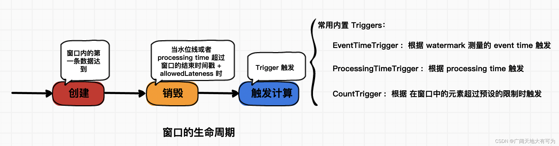 当窗口所属的第一条数据到达时,窗口会被创建