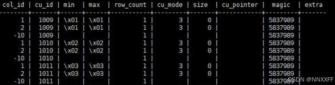 然后查询该cudesc表,就可以看到该dn上该列存表的CU信息