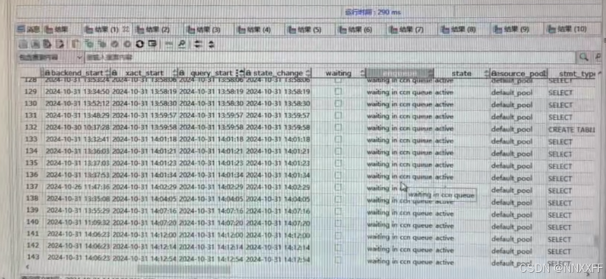 2024/10/31反馈业务阻塞,查看活跃视图,发现CCN排队,查杀两条执行时间最长的SQL后,业务恢复,需要排查CCN排队根因。