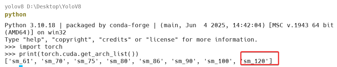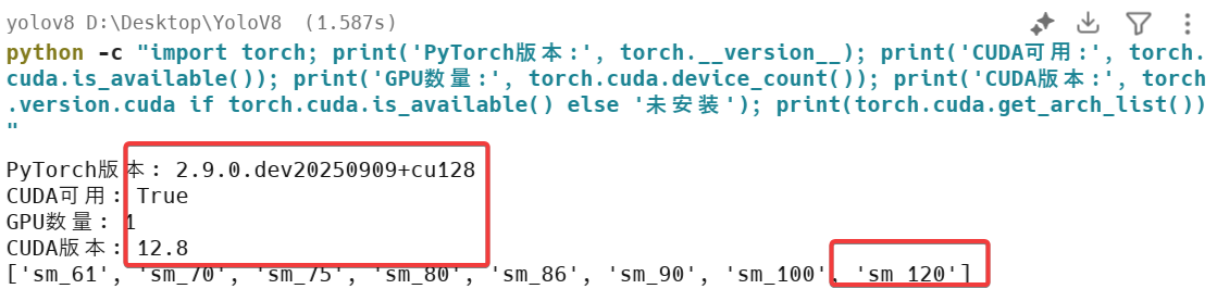 版本正确,能true使用,主要是支持sm120计算,就配置成功啦。
