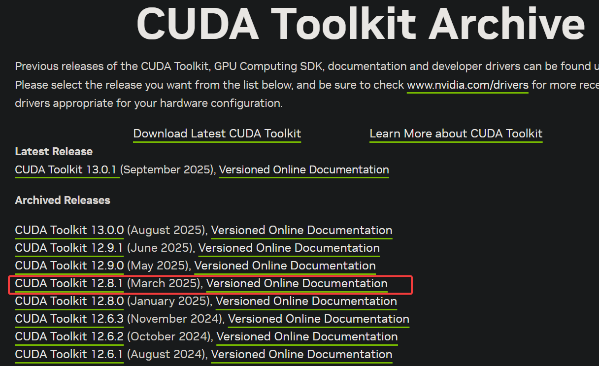 https://developer.nvidia.com/cuda-toolkit-archive,就下12.8.1最新版的