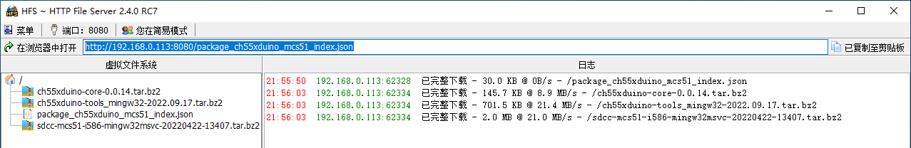 如果访问不了就搭建本地网络文件服务器进行安装,将资源下载到本地,通过HFS软件挂载到本地,再通过在Arduino开发板管理器网址添加本地的访问地址即可轻松搭建好。