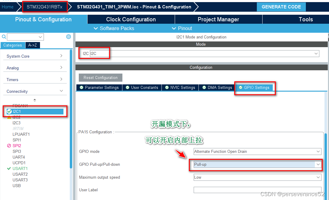- ✨有些硬件I2C在配置开漏输出模式下(STM32F103),引脚不能同时开启内部上拉,有些硬件是支持在开启开漏输出模式下,引脚同时可以开启内部上拉电阻,这一点需要注意。