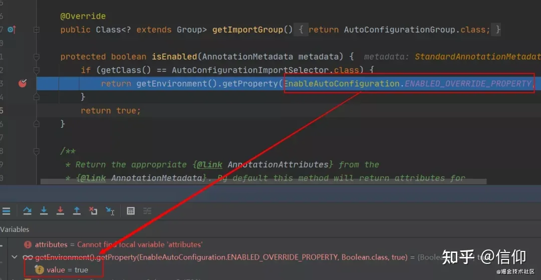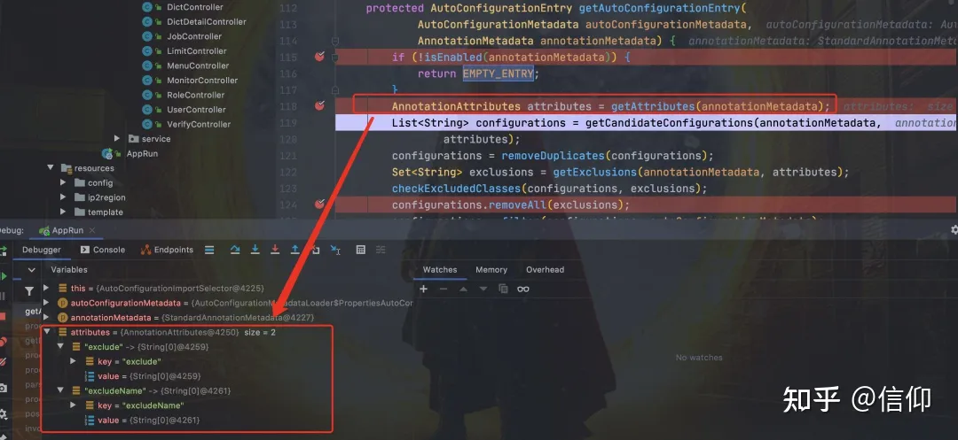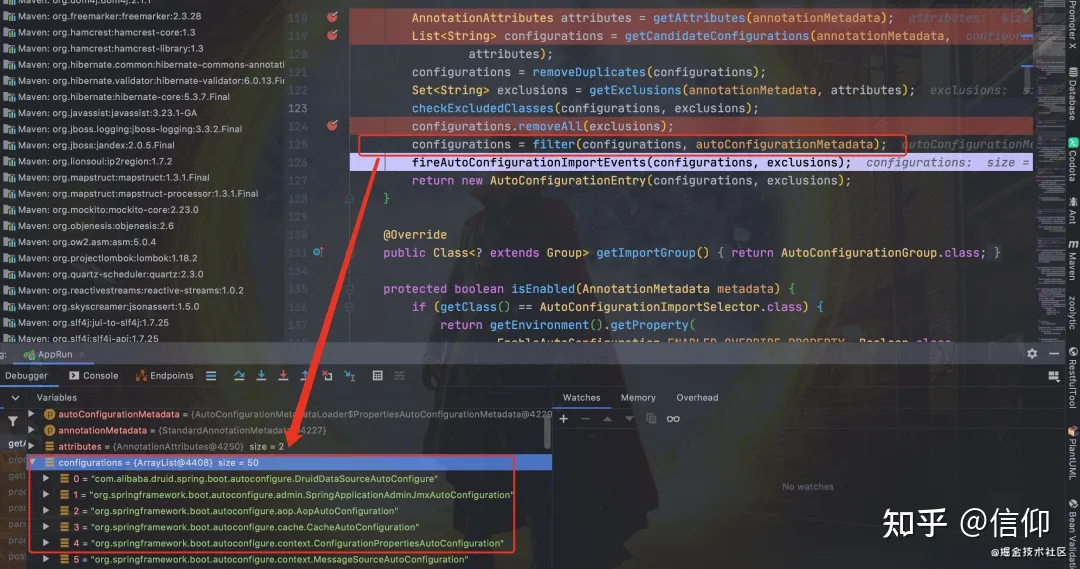 从下图可以看到这个文件的配置内容都被我们读取到了。XXXAutoConfiguration的作用就是按需加载组件。