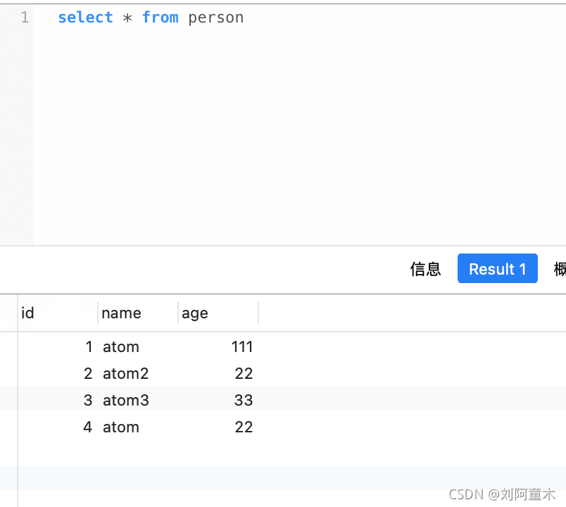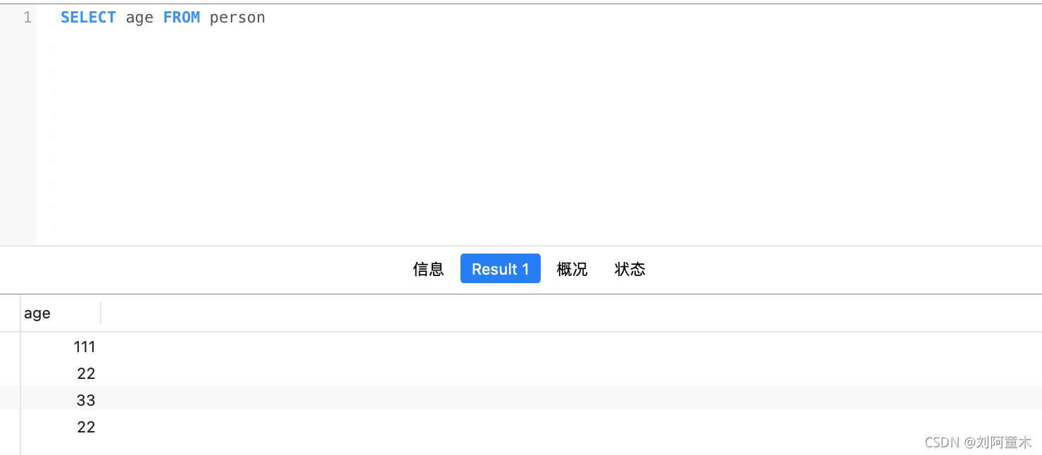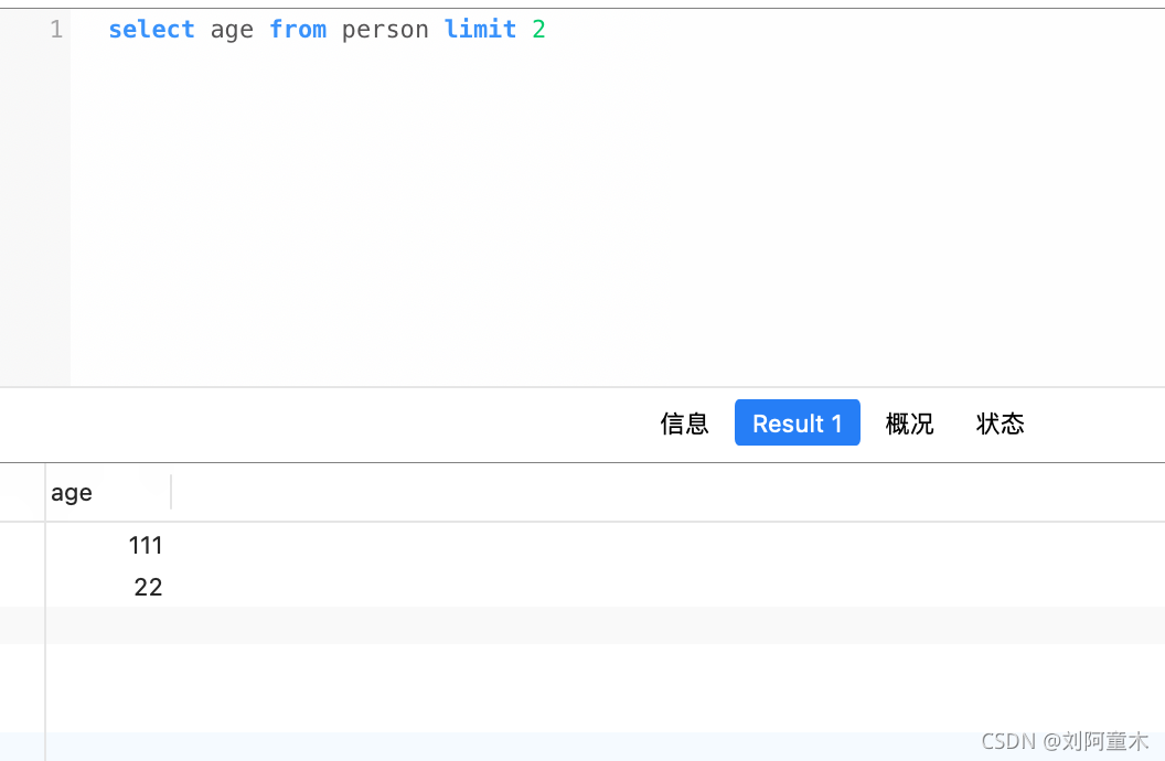 使用limit select age from person limit 2 筛选name为头两行的数据