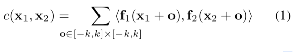 2.F lowNetCorr:2帧图片分别经过卷积后,将前帧当做 WH 个 11 的卷积核,对后帧做卷积操作。2帧特征图的大小一致,为降低计算量,每个卷积核只对后帧的(2K+1)邻域做卷积(论文中为21邻域),得到21211的特征图而后拉直成441。(公式中 f1(x1+o) 是否应该改为 f1(x) ? )