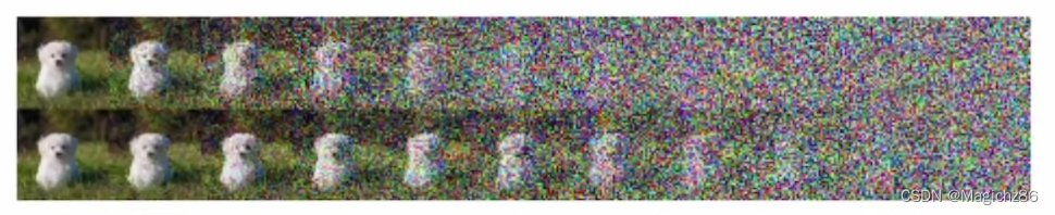 DDPM的想法来源于这样一个过程:对一个图像反复添加某分布的噪音,那么该图像最终就是一个随机噪音图。那么能否自动学习一个倒置过程呢?