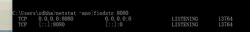netstat -ano|findstr 8080