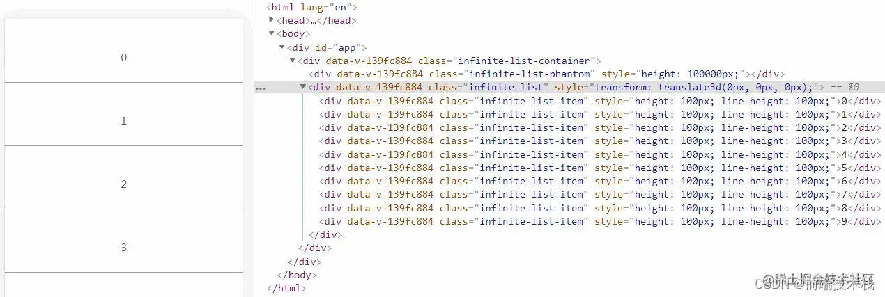 我们再看看之前那个虚拟列表实现链接里的效果: