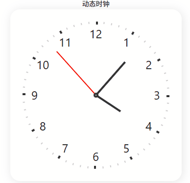 动态的模拟时钟,包括表盘、刻度、数字以及时针、分针和秒针。