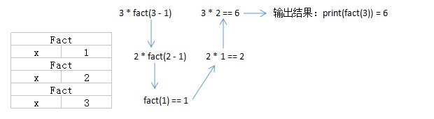 先堆栈,堆完之后弹栈,最后为3 * fact(3-1)值为6