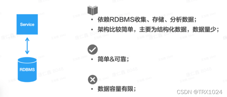 关系型数据库提供了数据的收集、存储和分析,数据质量比较高,但是能够支撑的数据量有限。