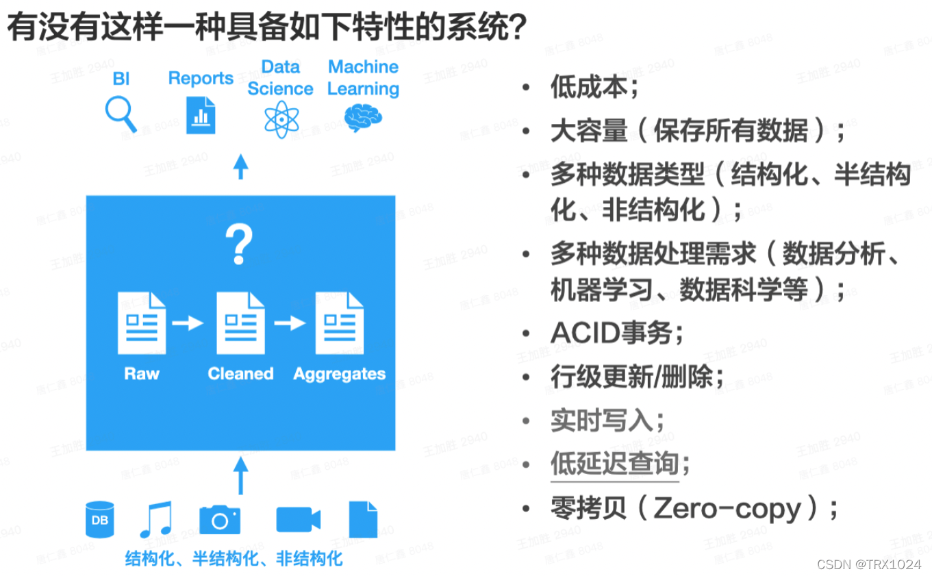 用户需要有这样一种系统,它既具备Hadoop的低成本大容量的优势,又具备数据仓库的ACID事务等能力。如果有一套技术方案能够支撑如上需求的话,那么就可以很大程度上解决Hadoop+Data Warehouse搭配使用带来的各种问题。