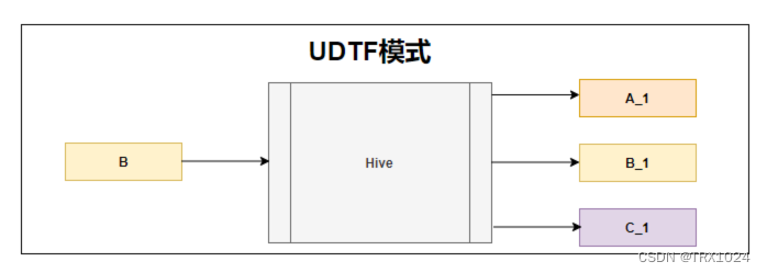 即用户定义表生成函数,UDF作用于单行数据,并且产生多个数据行。UDTF函数的输入与输出值是1:n的关系。