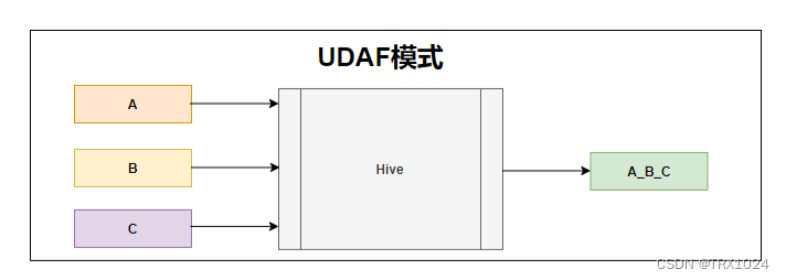 即用户定义聚集函数,UDAF用于执行自定义的聚合操作,作用于多行数据,并且产生一个输出数据行,UDAF函数的输入与输出值是n:1的关系。