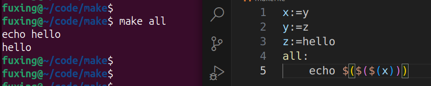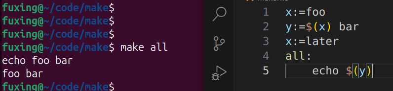 简单展开变量,使用 : 或者 ::=,变量会被展开为当前(最新)的值
