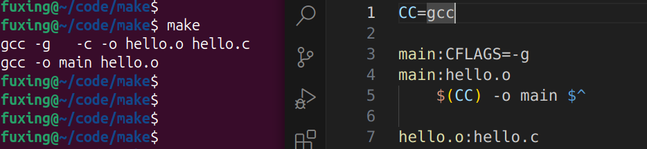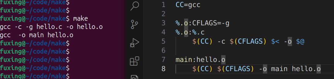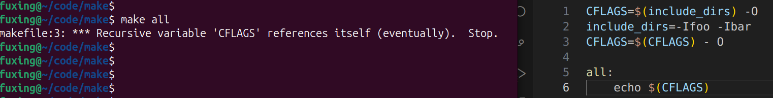 3、控制隐含规则或用户指令选项保留大写,如$(MAKE)